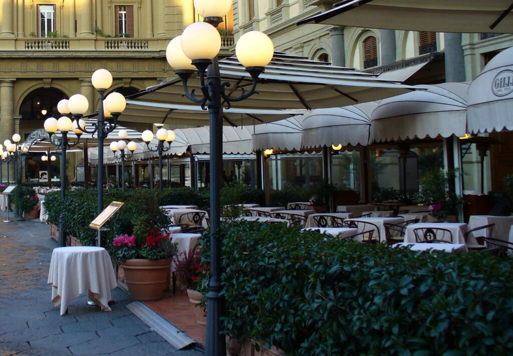 Forte dell’orgoglio prodotto dai suoi quasi trecento anni di storia, il Caffè Gilli è tra i locali più noti della città. Nato nel 1733 come pasticceria svizzera con il nome di Bottega Dei Pani Dolci, dalla sua location originale di via dei Calzaiuoli fu spostato prima in via degli Speziali e infine in piazza della Repubblica. L’eleganza mitteleuropea dei suoi interni richiama fedelmente il fascino della belle-époque e ricorda come questo sia sempre stato uno dei salotti prediletti da letterati ed artisti, oltre che punto di incontro della borghesia fiorentina.